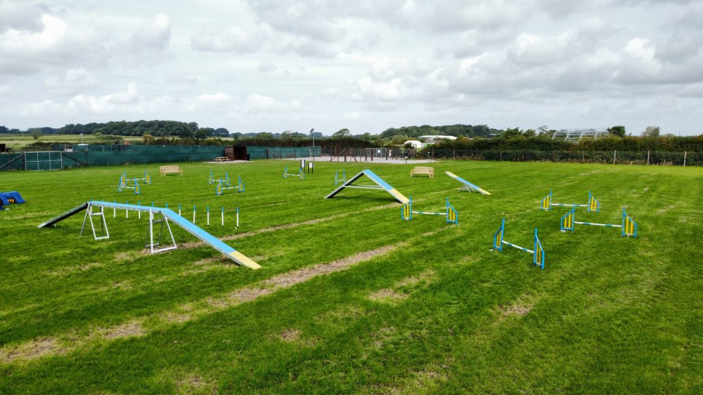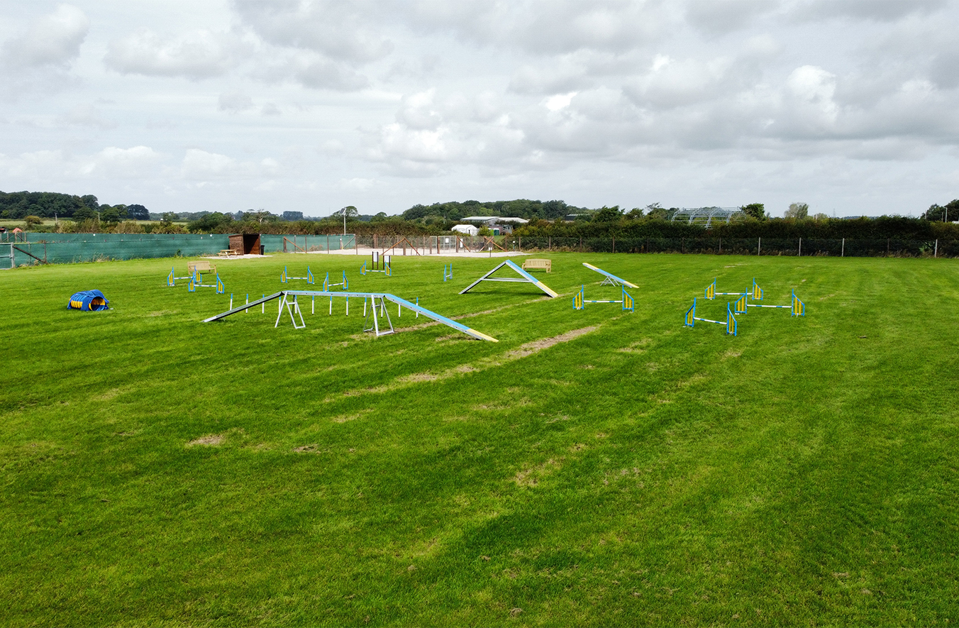 Our Agility Field provides a two acre secure dog field in a quiet rural setting, equipped with professional agility equipment.